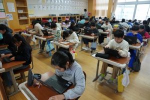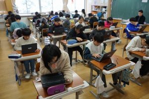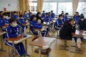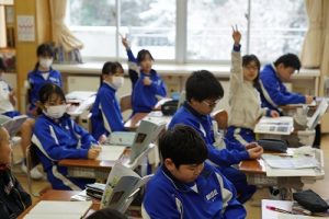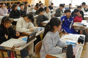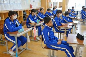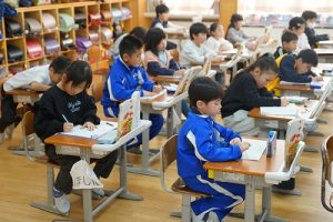 1校時の様子です。外は寒いですが、教室は暖かく、すごしやすいです。このような環境で学習できることに感謝しています。