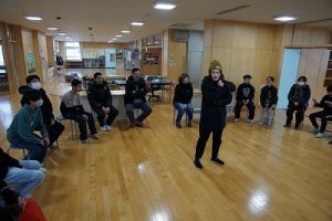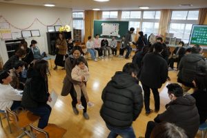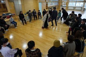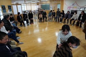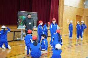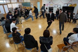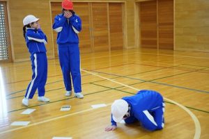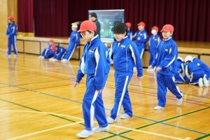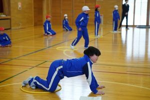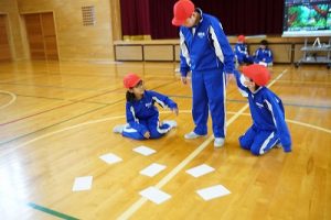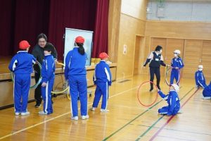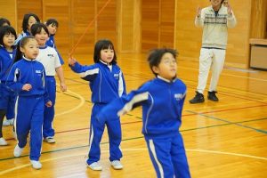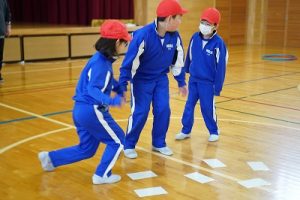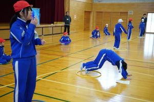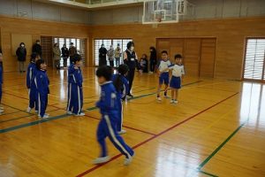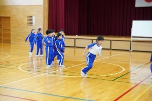 4年生の学習参観は、体育科「われらジャングル探検隊」でした。4年生も、運動が大好きです。今回は、表現運動を行いました。写真は、ジェスチャーで伝言ゲームをしたり、グループごとに「お題」を表現したりしているところです。