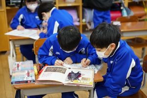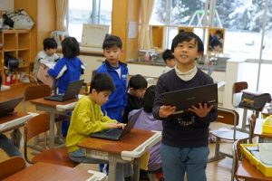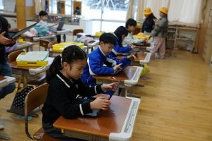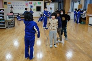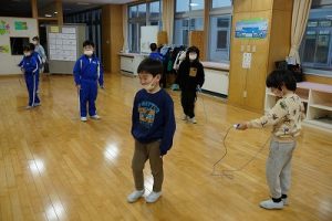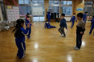 始業前の様子です。1年生はなわとび、2年生はタブレットPC、3年生は係活動と、それぞれの学年でいろいろな活動を頑張っています。