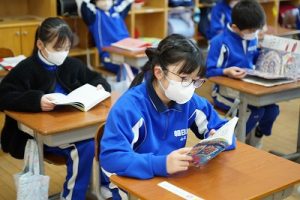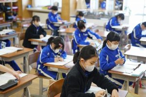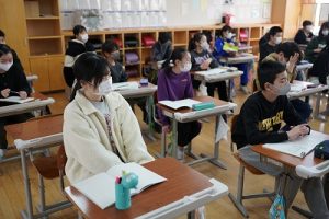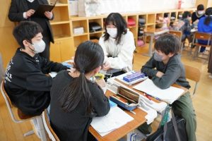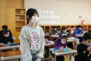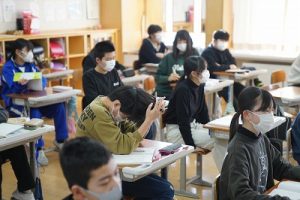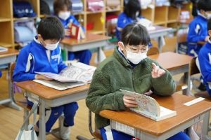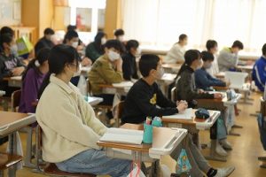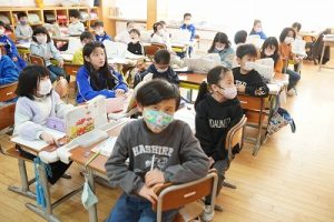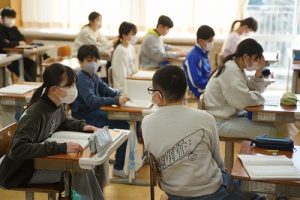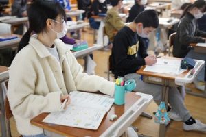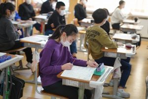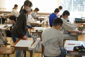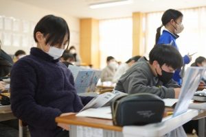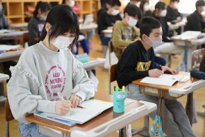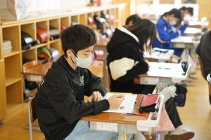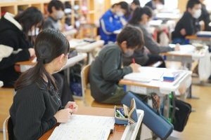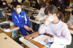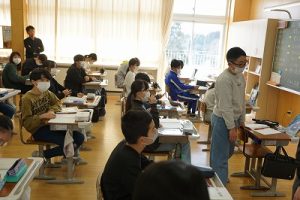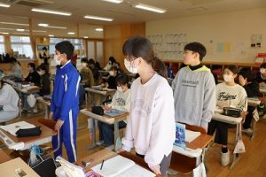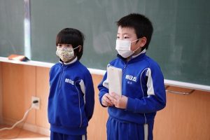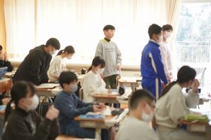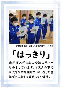 1校時の様子です。1年生は、明後日の入学説明会で行われる来年度入学生との交流のリハーサルを行っていました。音読が、とても上手でした。