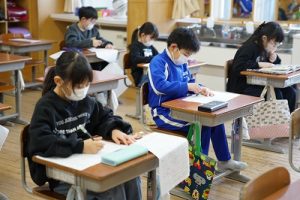 4年生の図画工作科でも印刷が始まりました。今日行っていたのは、掘っていない板のままの状態の面にグラデーションを施して印刷するというものでした。同時に、彫刻刀で掘り進めることも行っていました。