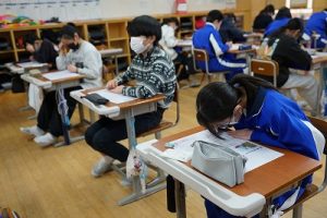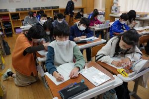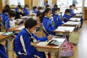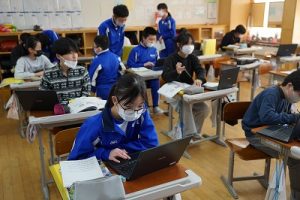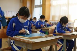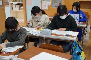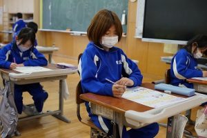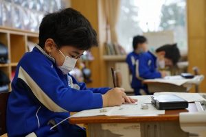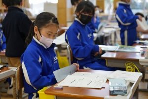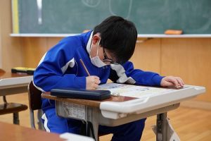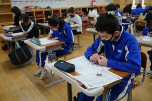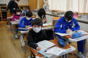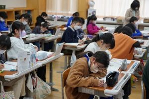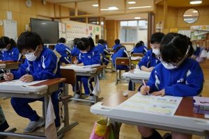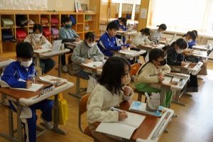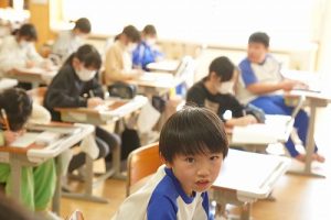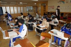 1校時の様子です。テストや、テスト直しをしている学年が多かくありました。4年生は、外国語活動で元気に発音していました。5年生は、算数の難問に取り組んでいました。
