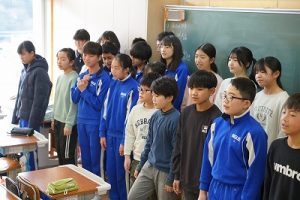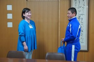 氷見市社会福祉協議会から2名の方に来ていただき、6年生の代表から募金を渡しました。全校のみなさんからいただいた善意を有効に活用していただけることでしょう。