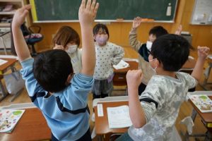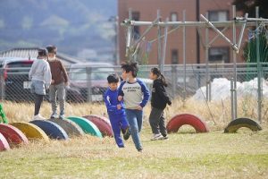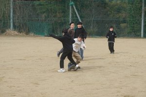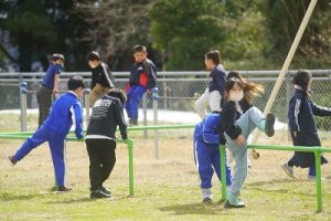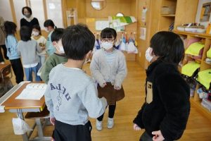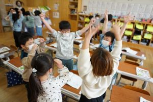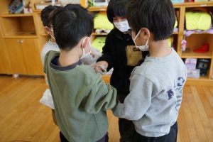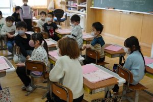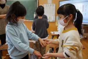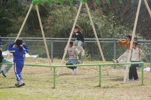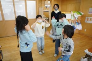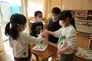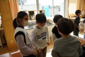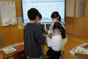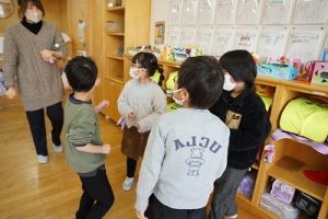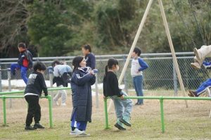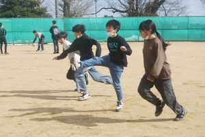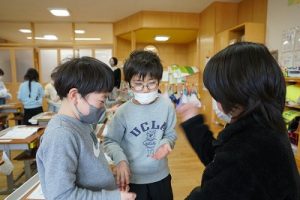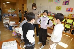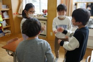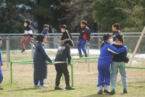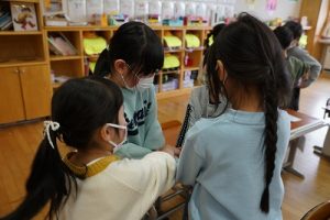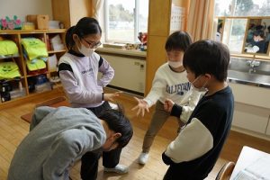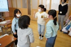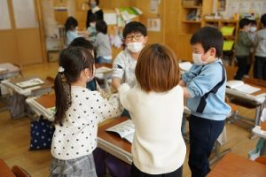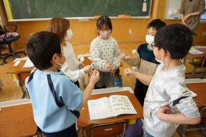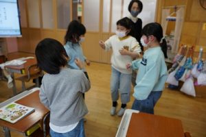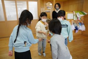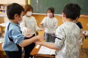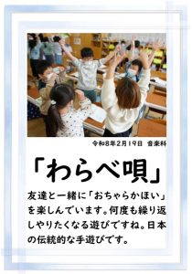 1年生が、「おちゃらかほい」をしていました。子どもたちの楽しそうな様子は、見ている人も楽しい気持ちにしてくれますね。