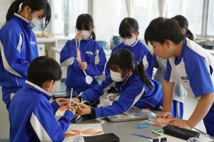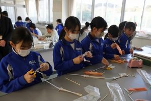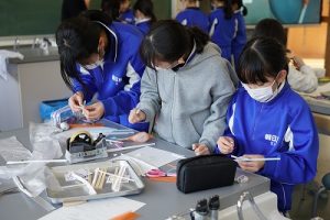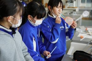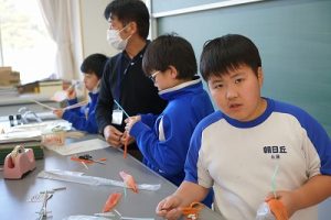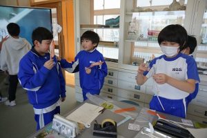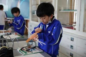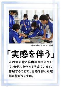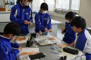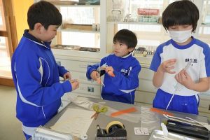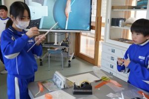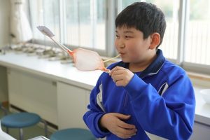 4年生の理科では、骨や筋肉に関する学習を行っています。今日は、ストローや風船等を使って、筋肉モデルを作っていました。筋肉が膨らむ様子が捉えられましたね。