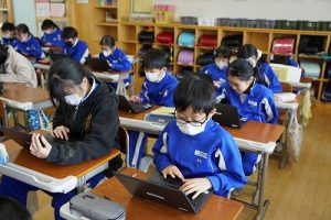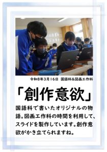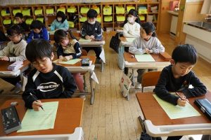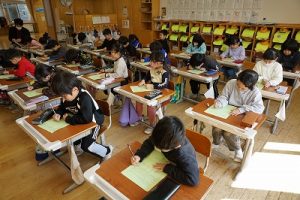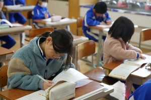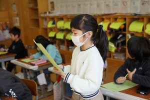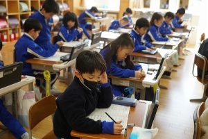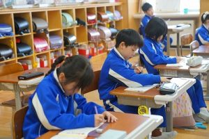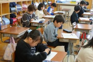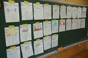 2校時の様子です。1年生は、キャリアパスポートを書いていました。1年前は、名前をやっと書いていた子供たちが、すらすらと文章にまとめています。1年間の成長はすごいですね。5年生は、物語作りをしていました。面白そうなお話がたくさんありました。