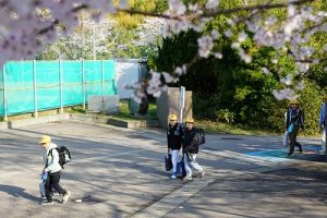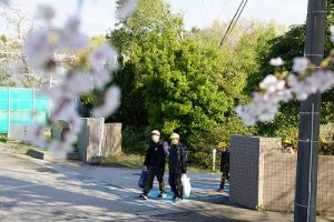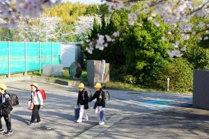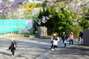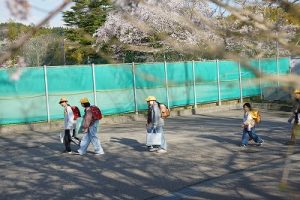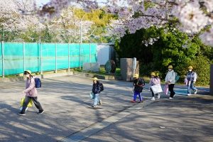 満開の桜に迎えられて、子どもたちが登校してきました。さわやかな、とても気持ちのよい朝です。令和8年度のスタートをお祝いしてくれているようですね。