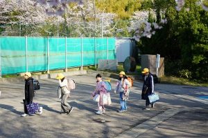 2~5年生が元気に下校していきました。明日から、また元気に登校してきてくださいね。みんな待っています。