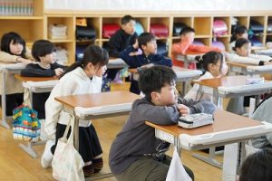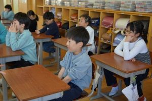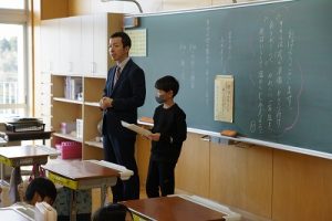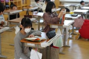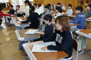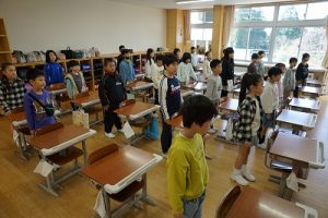 朝活動の様子です。新しい担任との初めての朝活動ですね。今日は10時から入学式が行われるので、6年生の椅子は在校生の基準としてすでに並べてあります。今日も、友達と協力品がr頑張ってほしいですね。