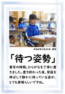 【再掲】本校のホームページには、保護者の皆様に是非見ていただきたいページがあります。それは、「朝日丘小学校の宝物」のページです。子どもたちの素晴らしい姿を掲載することで、子どもたちの考え方や行動を前向きに導くことができると考えています。毎日1枚以上作成していますので、是非ご覧になってください。本日も、どうぞよろしくお願いします。→朝日丘小学校の宝物 – 氷見市立朝日丘小学校 【校長 坂田和彦】