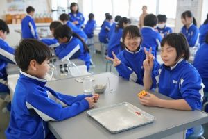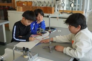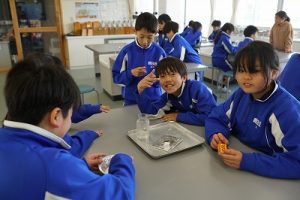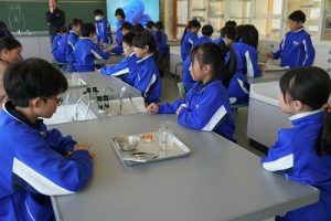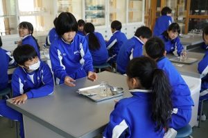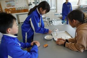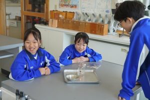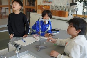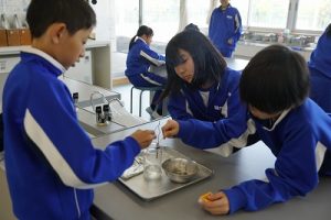 6年生の理科では、「ものの燃え方と空気」の学習が始まりました。今日は、集気瓶の中でろうそくを燃やすし、「これから〇〇を調べていきたいな」などと、期待を膨らませていました。