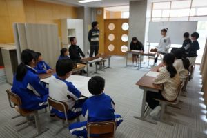 1校時は、9:30~9:15です。9:10ごろの様子ということは、授業が終わる直前です。1年生は自己紹介を行っていました。5年生、6年生へ行った頃は、授業が終了するころでした。