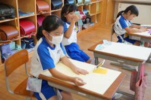 9月10日(火)顔のスケッチ 2024年9月10日 朝日丘っ子 3年生の図画工作科では、自分の顔をスケッチしていました。集中して、真剣な表情で取り組んでいるのがすばらしいです。鏡を見ながら、自分の顔そっくりに描けるように頑張っていました。