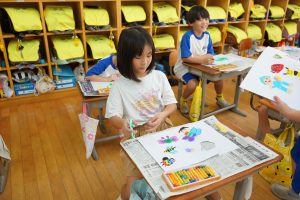 【1年生】先日描き上げた素敵な花に遊びに来る虫を作っていました。