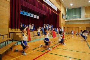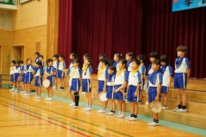2年生は、元気いっぱいにダンスを披露します。最初は2チームに分かれ、人気曲に合わせてダンスを踊ります。音楽科で学習した拍子やリズムを意識しながら、一生懸命に練習を重ねました。最後は、29名全員で、フラッグを使って楽しく踊ります。会場のみなさんも、ぜひ一緒にお楽しみください。