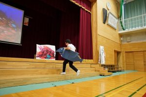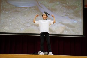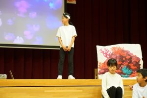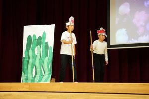 5年生は、英語版「スイミー」の劇に挑戦します。昔、演じた「スイミー」が英語になると、どのように聞こえてくるのでしょうか。高学年になり、レベルアップした演技や聞こえてくる英語をお楽しみください。