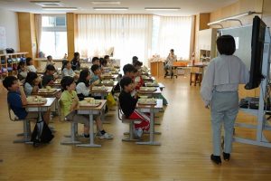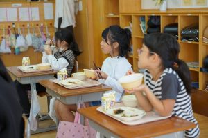 10月9日(水)給食時の学校訪問 2024年10月9日 朝日丘っ子 給食センターの江渕先生が、3年生にバランスの良い食生活についてお話ししてくださいました。給食を残さずに食べると、ますます健康になりますね。金曜日には、4年生に話してくださる予定です。
