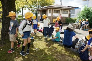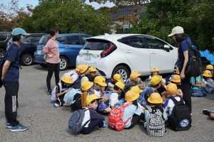 1年生は、生活科「あきをたのしもう」の学習で、どんぐりや葉を拾いに行きました。場所は、水産センターの周辺です。たくさんのドングリを拾って大喜びでした。