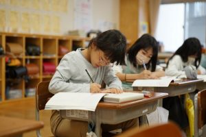 1校時の様子です。元気いっぱいに運動したり、落ち着いて勉強したりと、文武両道ですね。