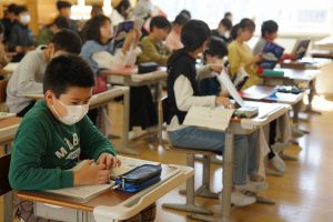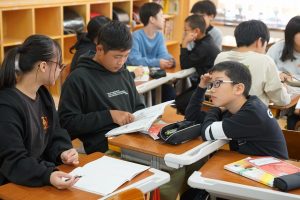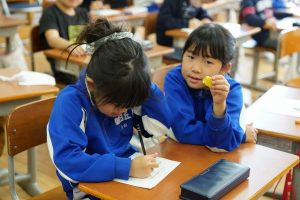 今日は、学校訪問研修会があり、たくさんのお客様が来られます。3校時と4校時が公開授業となっています。写真は、1校時の様子です。いつもどおり、落ち着いて学習しています。