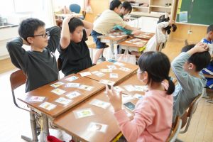 10月23日(水)Animal 2024年10月23日 朝日丘っ子 3年生の外国語活動では、Animalの絵をカードで英語の言い方を学習した後、カルタゲームを聞き取りの練習をしていました。アンナ先生の発音に集中して、一生懸命聞き取っていました。