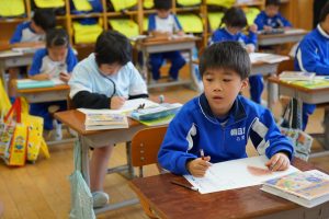 1校時の様子です。1・2年生は、昨日の校外学習の疲れがすっかりとれた様子で、元気に学習日に取り組んでいました。