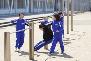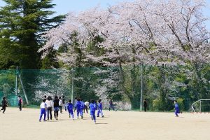 とてもいい天気でしたので、昼休みはグラウンドで遊ぶ子どもがたくさんいました。よく見ると、サッカーボールが3個あります。3試合同時に行われているのです。鉄棒や砂場遊びもいいですね。ますます元気な体をつくれそうですね。