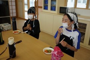 6年生の家庭科では、野菜炒めの調理実習を行いました。食材を切り、フライパンで炒めて味付けし、美味しくいただきました。後始末もとてもきれいにしてくれました。家でもやってみてくださいね。