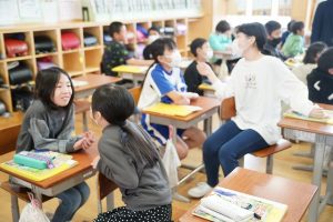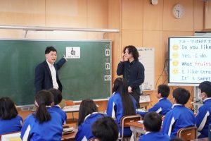 学校での外国語活動、外国語科の授業は、英語専科の田中先生と、ALTのボーレン・チョン先生が行っています。授業の様子を紹介します。