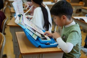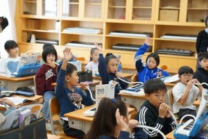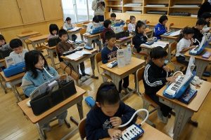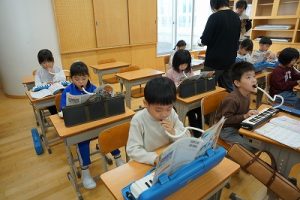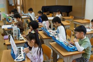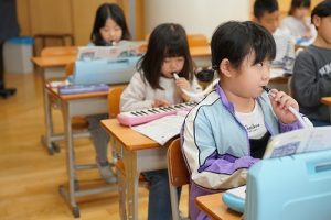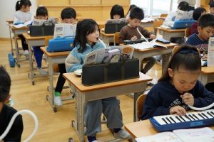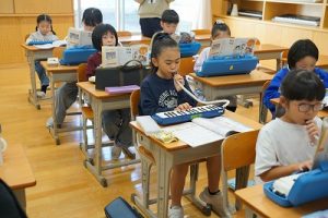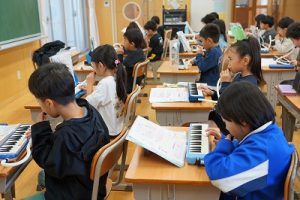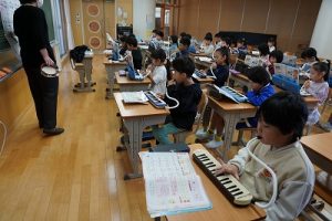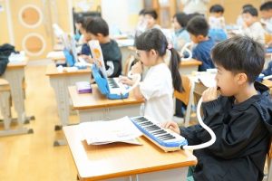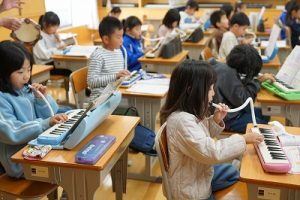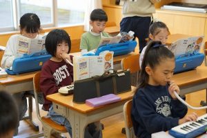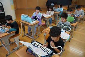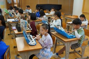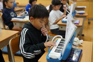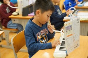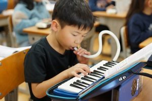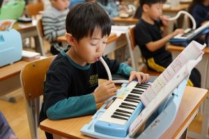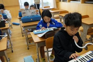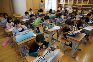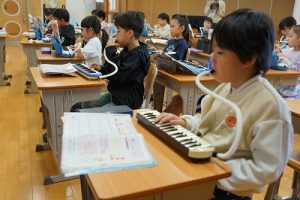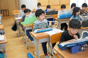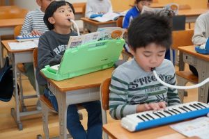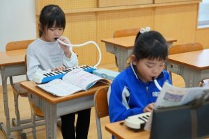2年生の音楽科では「山のポルカ」を鍵盤ハーモニカで演奏していました。みんなとても上手になってきました。頑張っていますね。