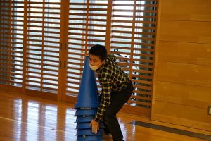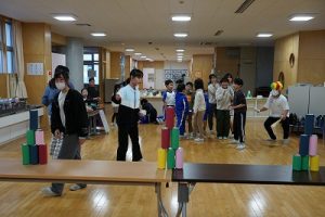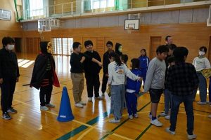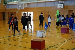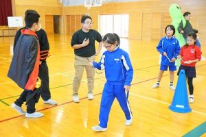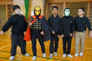 6年生が企画した「ハロウィンフェスティバル」が行われました。6年生が、「お化け屋敷」「缶たおし」「迷路」「ボウリング」「ダンス」「お玉レース」の6つの遊びのコーナーを準備し、5年生以下が縦割りのグループで、そのコーナーを回るというものです。本当に楽しい集会となりました。