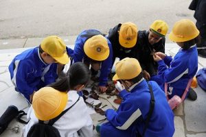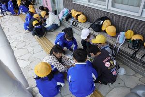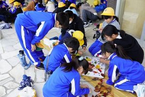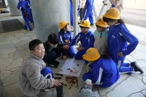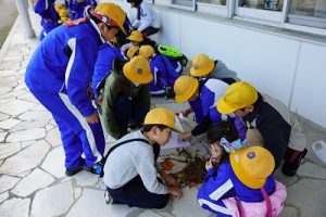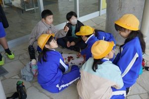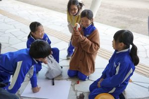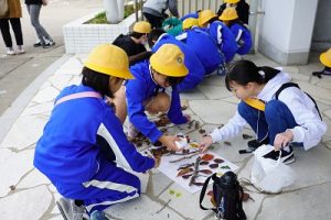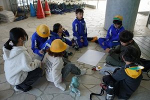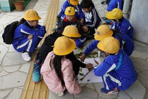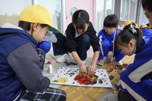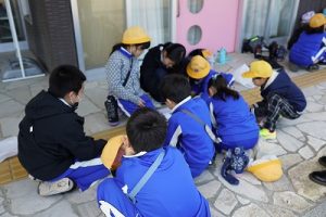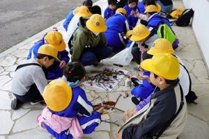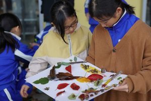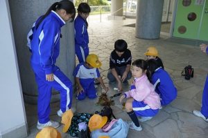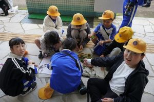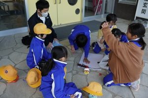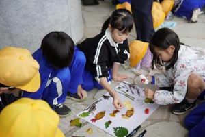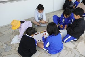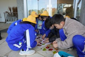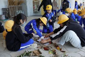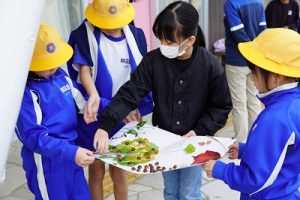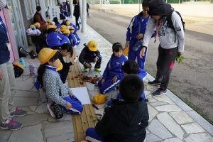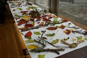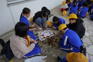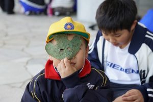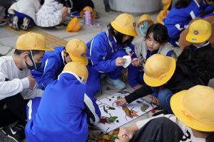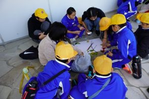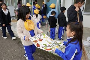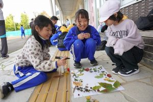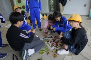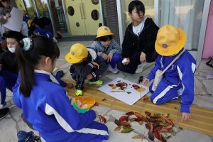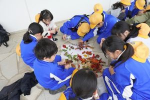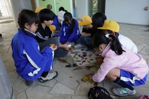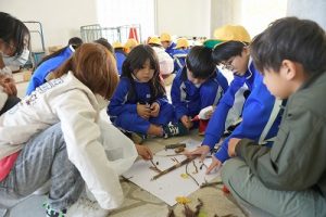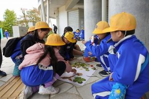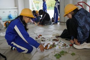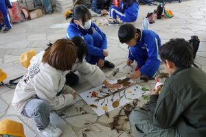 学校に戻ってからは、集めてきた落ち葉やドングリを使って造形作品を作りました。