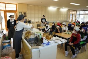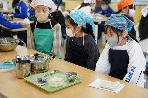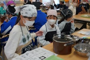 11月7日(金)氷見の食材を使った料理教室1(5年生) 2025年11月7日 朝日丘っ子 講師の先生をお迎えして、氷見の食材を使った料理教室の始まりの様子です。今日は、ご飯と味噌汁を作ります。ワクワクした気持ちで臨んでいるようです。