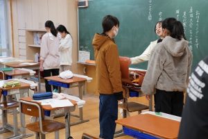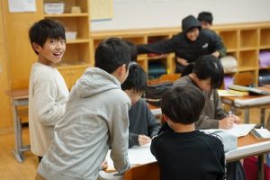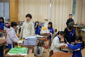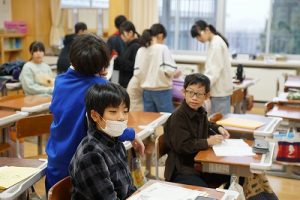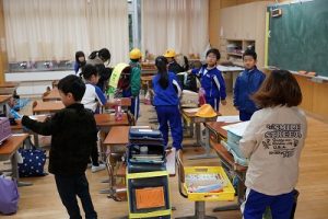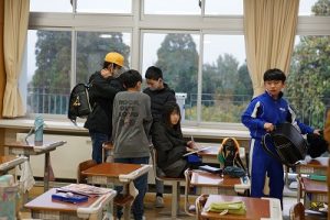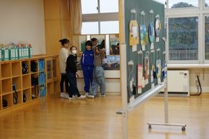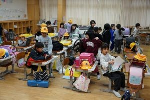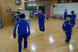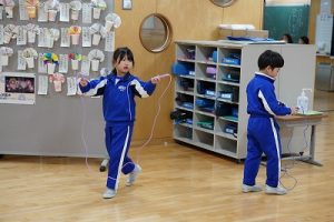 今朝は、大きな雨が降っており、また気温も急に下がった中での登校でした。集団登校が終わった後、教室の様子を見に行ったのですが、もう元気いっぱいです。雨の中の登校の疲れなど、まったく感じさせない様子でした。すごいですね。今日も一日、元気に頑張ってくれることでしょう。