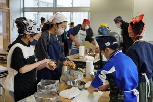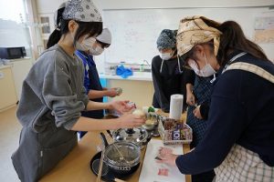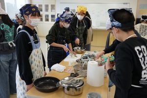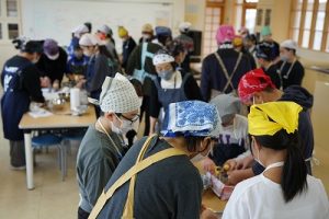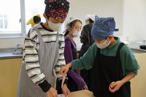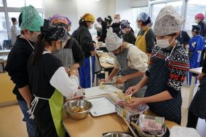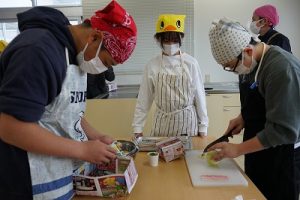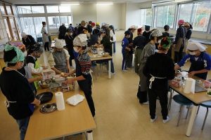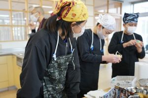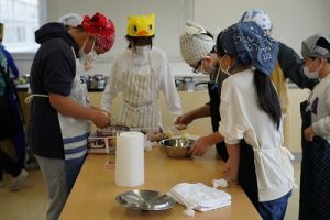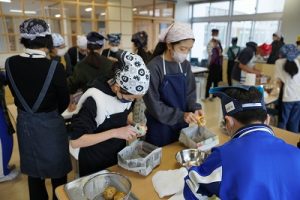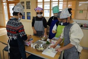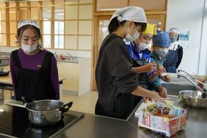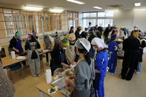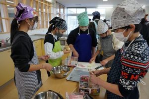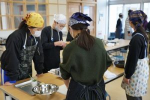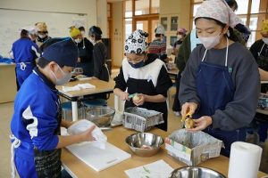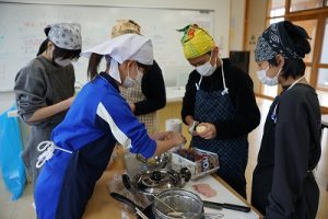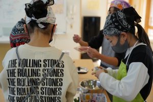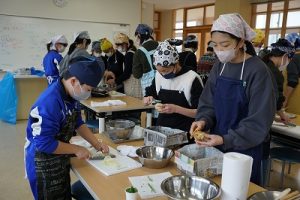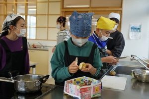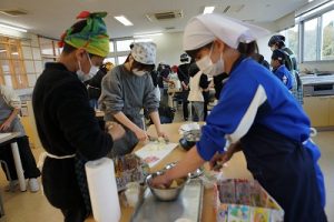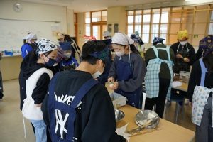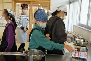 11月28日(金)ベーコンポテト~調理編~(6年生) 2025年11月28日 朝日丘っ子 6年生の家庭科では、調理実習でベーコンポテトを作りました。写真は、調理をしている様子です。協力し合って楽しそうに頑張っていますね。