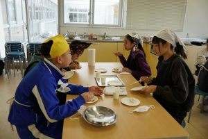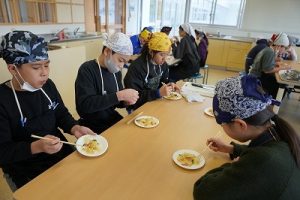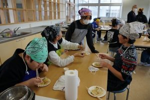 11月28日(金)ベーコンポテト~食事編~(6年生) 2025年11月28日 朝日丘っ子 ベーコンポテトが出来上がりました。とても美味しそうに食べていますね。実際、本当に美味しかったです。さすがですね。