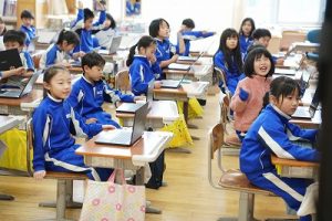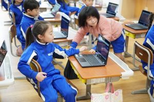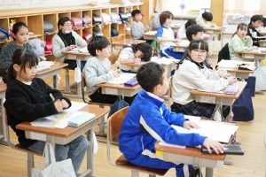 5校時の様子です。1年生の体育科では、縄跳びの学習をしていました。二重跳びができるようになった人がたくさんいます。すごいですね。2年生は、パソコンで早押しクイズをしていました。とても盛り上がっていました。