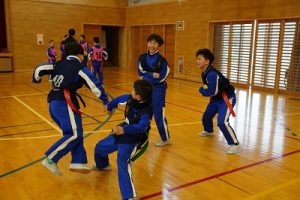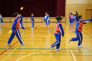 12月17日(水)タグラグビー(5年生) 2025年12月17日 朝日丘っ子 5年生の体育科では、タグラグビーに取り組んでいます。グループごとの練習では、作戦を考えて、それを試してみる様子がみられました。考えて運動しています。