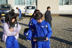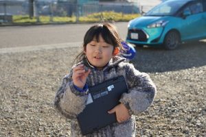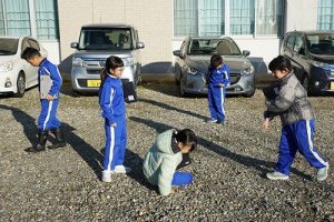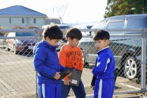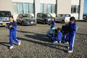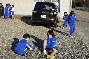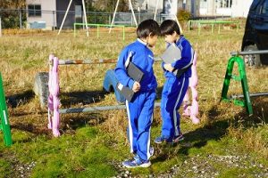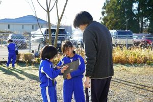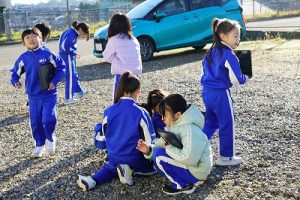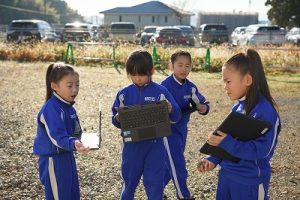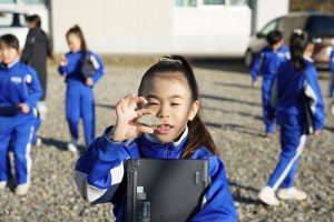 2年生は、おもしろい形の石を探して、タブレットPCで撮影していました。きれいな模様の石だったり、何かに見える石だったりと、いろいろな石を見付けていました。自慢の石を見せ合っていて、とても楽しそうでした。