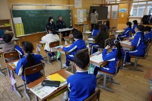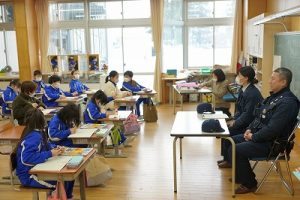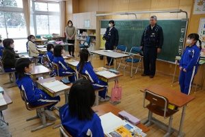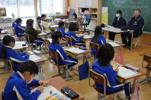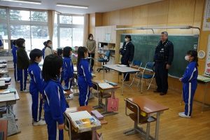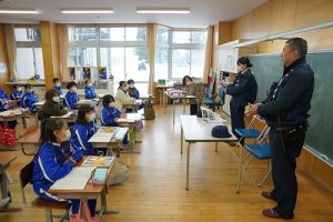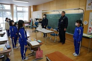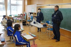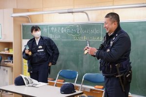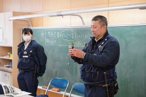 3年生の社会科では、事件や事故から人々を守る警察官の仕事について学習します。避難訓練で来てくださった2名の警察官の方に、3年生教室でお話を伺いました。仕事内容について説明していただいただけではなく、服装や持ち物についても実物を見せながら教えていただきました。警察官になろうと思った理由も聞かせてくださいました。お忙しい中、本当にありがとうございました。