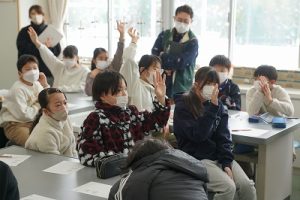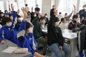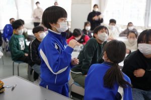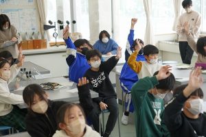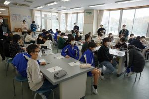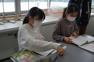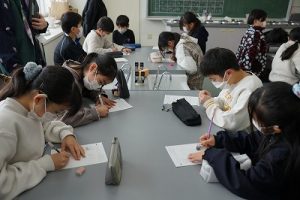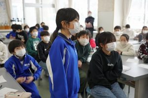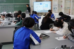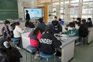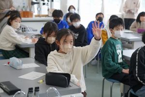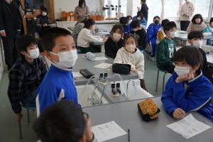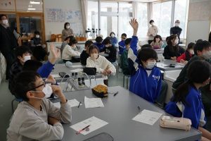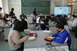 1月27日(火)水溶液の重さ(5年生) 2026年1月27日 朝日丘っ子 5年生の理科では、「ものを水にとかす前と、とかした後の全体の重さ」を調べる実験をしていました。写真は、実験後にまとめをしているところです。よく考えて発言していました。