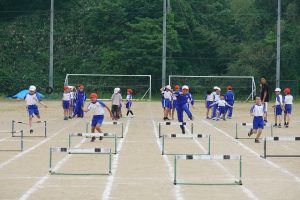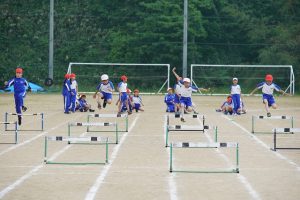 ハードルの練習をしていたのは、4年生でした。6年生になったら連合体育大会に出場します。中学年のうちからハードルをリズミカルに走り越えていく練習をすることで、合理的で心地よい動きが身に付くことでしょう。