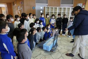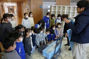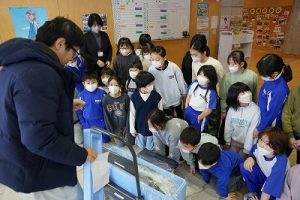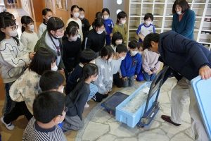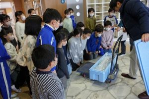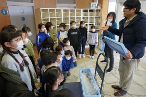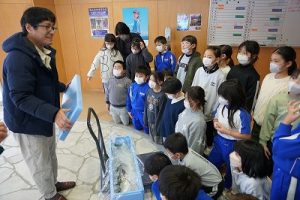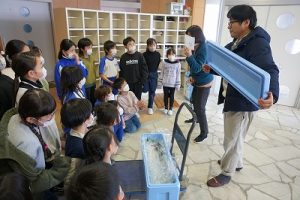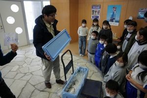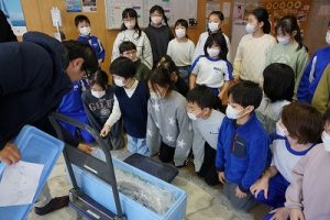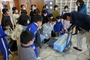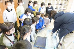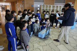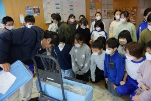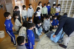 5校時に行われる「氷見の魚(ブリ)を知ろう事業」のため、市役所の方が、8.1kgのブリを届けて下さいました。3年生は、社会科で地域の学習をしているため、届いたブリを見学させてもらいました。3年後、6年生になったときに食べられるといいですね。