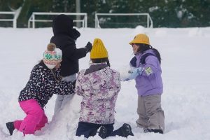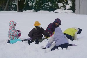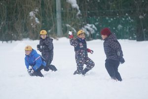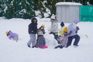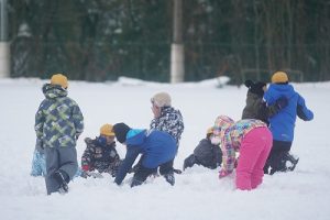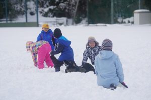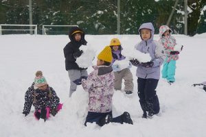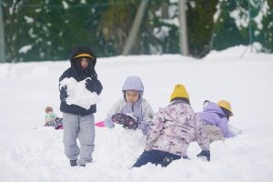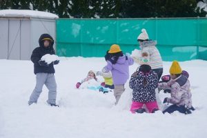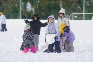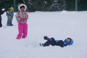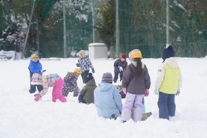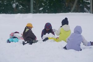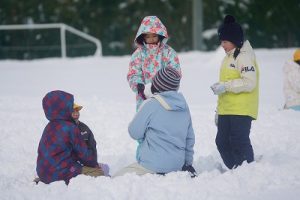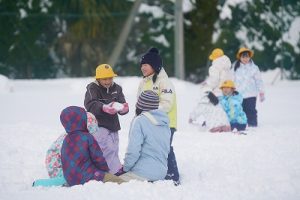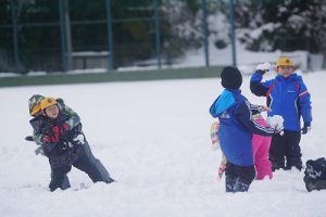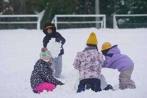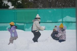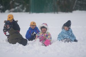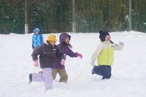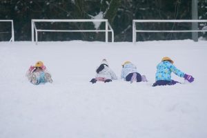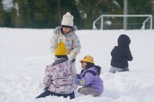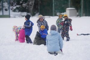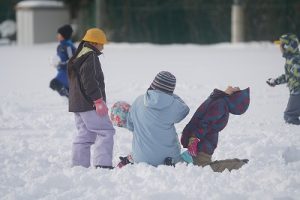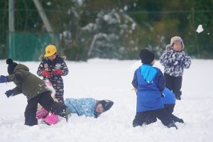 6校時に、3年生が雪遊びをしていました。雪合戦、雪だるまづくりなどももちろん楽しいですが、雪の上に寝転んだり、走り回ったりするだけでも楽しいですね。友達と一緒だから楽しいのですね。