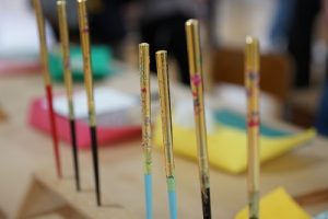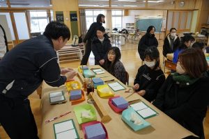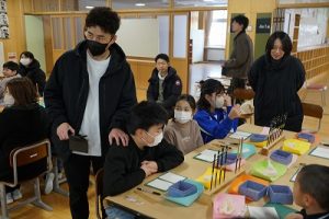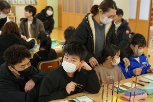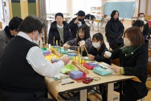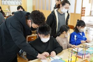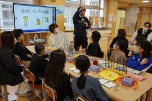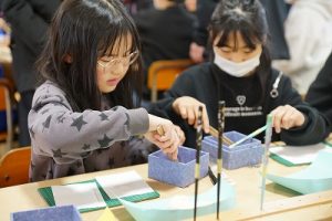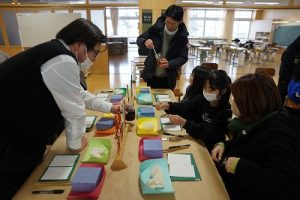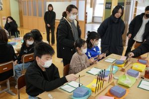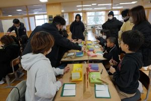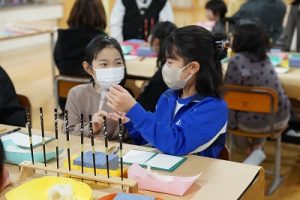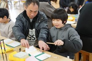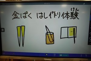 4学年の親子活動は、「金箔箸作り体験」体験です。好きな色の箸を選び、模様を付けた後に金箔を巻き付けました。巻き付けた金箔をしっかり押しつけた後、講師の先生に、はがれないように加工していただきました。貴重な体験が出来ましたね。