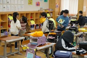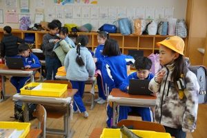 8時過ぎの様子です。カッパを着て歩いて来た1年生は、一生懸命準備を進めていました。3年生は、なわとびカードを活用して、自分のできる技を増やしていました。新しい一週間が元気にスタートしました。