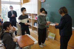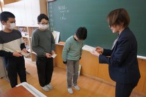 2月3日(火)書き損じハガキ回収 2026年2月3日 朝日丘っ子 6年生が中心となって集めていた書き損じハガキを、氷見ユネスコ協会から取りに来ていただきました。世界へ目を向けたこの気持ちを、これからも大切にしていってほしいと思います。