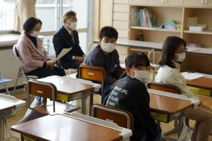 「SDGsーESD富山シンポジウム」が、参集とオンラインでのハイブリッド型で行われました。初めに、参集している6校の発表を聞きました。その後、3グループに分かれて、互いの学校の取組について質問したり、質問されたことに答えたりしました。ユネスコスクール同士で交流することができ、とてもよい機会になったと思います。