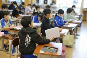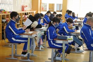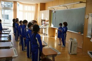 朝の会の様子です。歌を歌ったり、健康観察をしたりしています。明日からの3連休を楽しむためにも、今週の最終日をしっかり頑張りましょう。