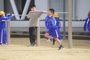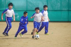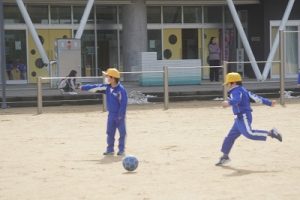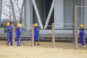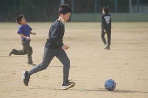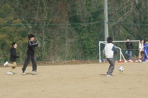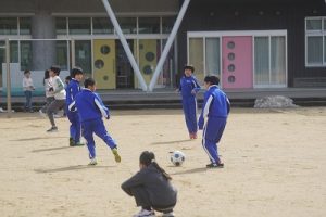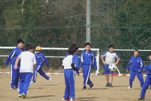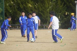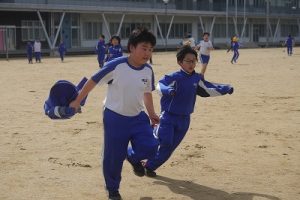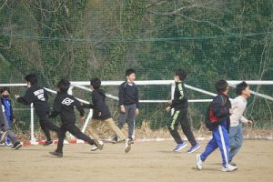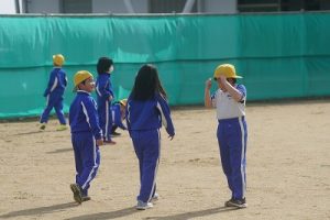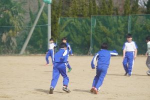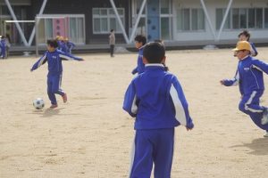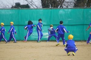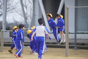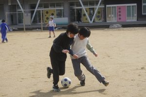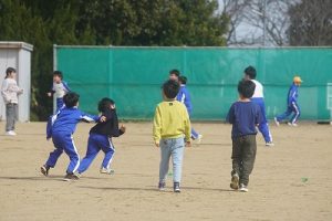 昼休みにグラウンドで遊ぶ子供たちの様子です。とても暖かく、外に出ているだけで気持ちの良い日です。元気いっぱいで、とてもいいですね。